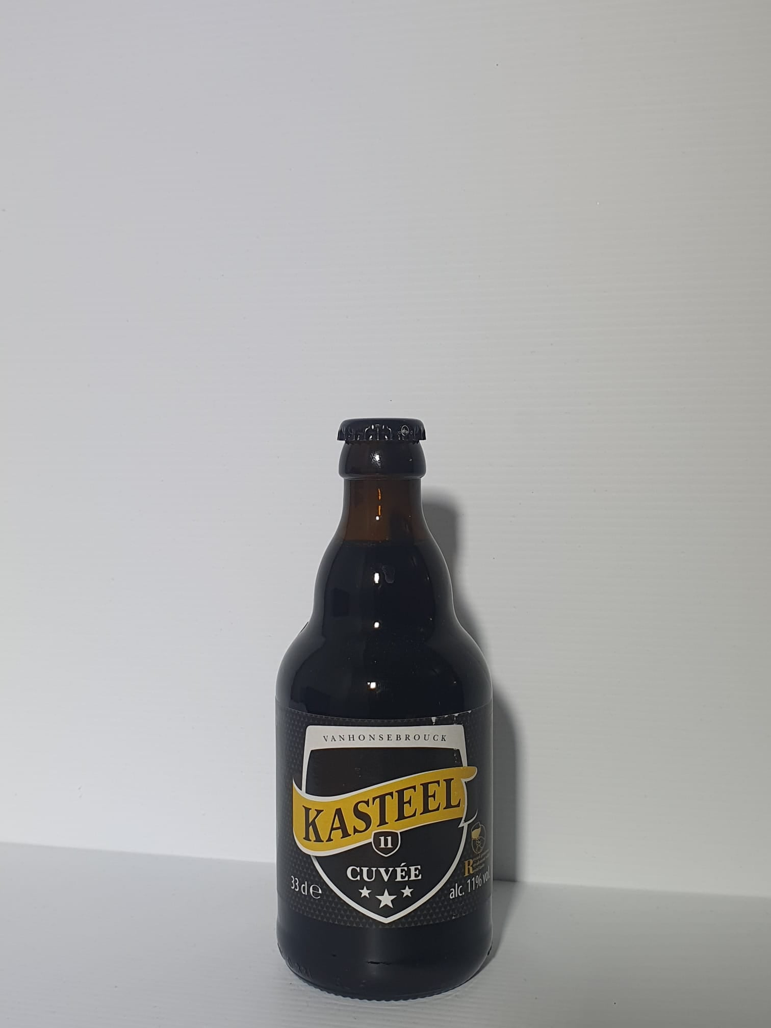 Bottiglia 0.33l. Kasteel Cuvée ha un sapore simile a quello di una Kasteel Donker di dieci anni. I malti tostati e caramellati conferiscono alla birra un gusto morbido e pieno, con note fruttate che ricordano il Porto o il Madera. Il retrogusto è caratterizzato da una sottile nota amarognola di luppolo. La palette di sapori si presta perfettamente all'abbinamento con la birra. Ottima con la selvaggina o i formaggi!