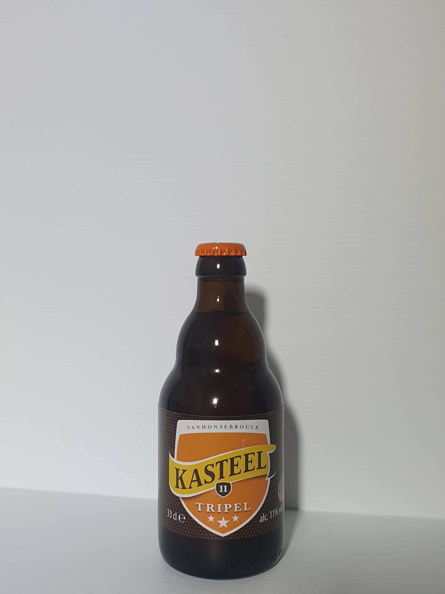 Bottiglia 0.33l. Kasteel Tripel è una birra speciale bionda forte, prodotta con un'alta percentuale di luppolo aromatico. La fruttatezza del luppolo e le note di malto e chiodi di garofano le conferiscono carattere. Questa tripla ha un sapore leggermente amarognolo e piace a molti amanti della birra.