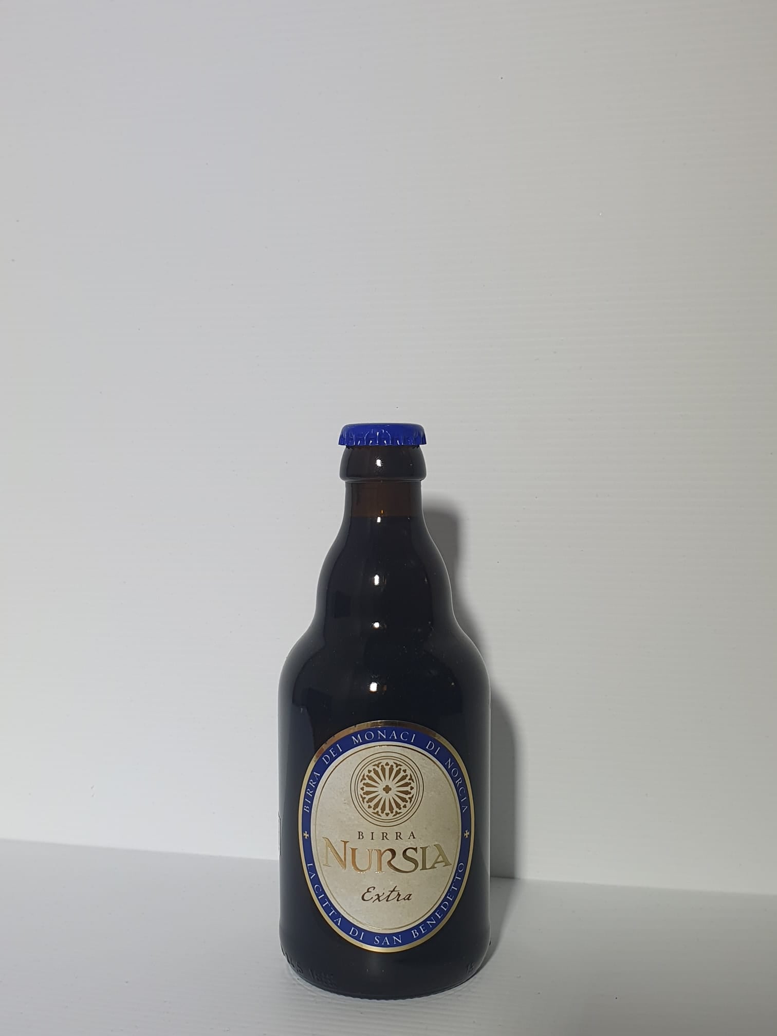 Bottiglia 0.33l. Birra Nursia Extra colpisce per il colore marrone avvolgente, con riflessi amaranto e una schiuma compatta e persistente. Il suo aroma si caratterizza per le note di lievito fresco e frutti di bosco, impreziosite da un tocco di cacao. Una birra audace, in cui la dominante del malto si fonde con sensazioni di caramello e liquore per culminare in un finale caldo e speziato